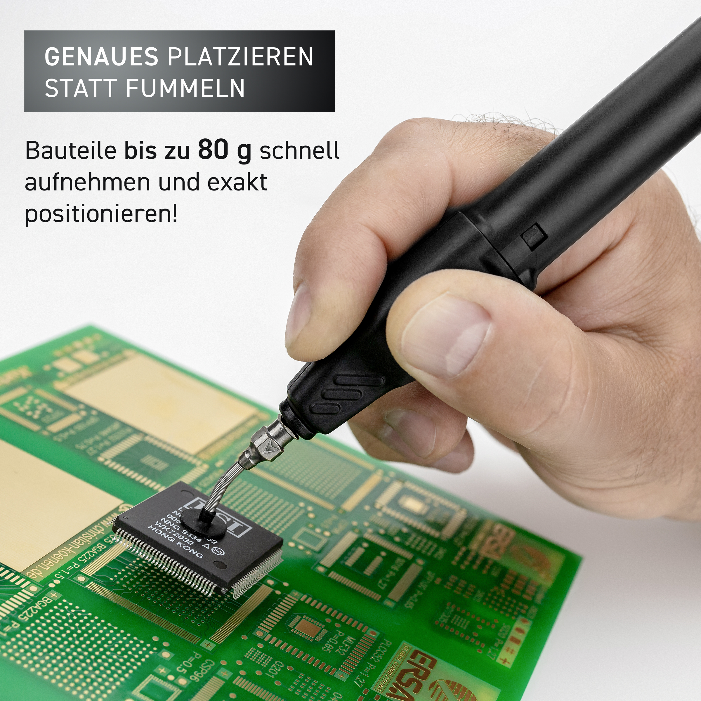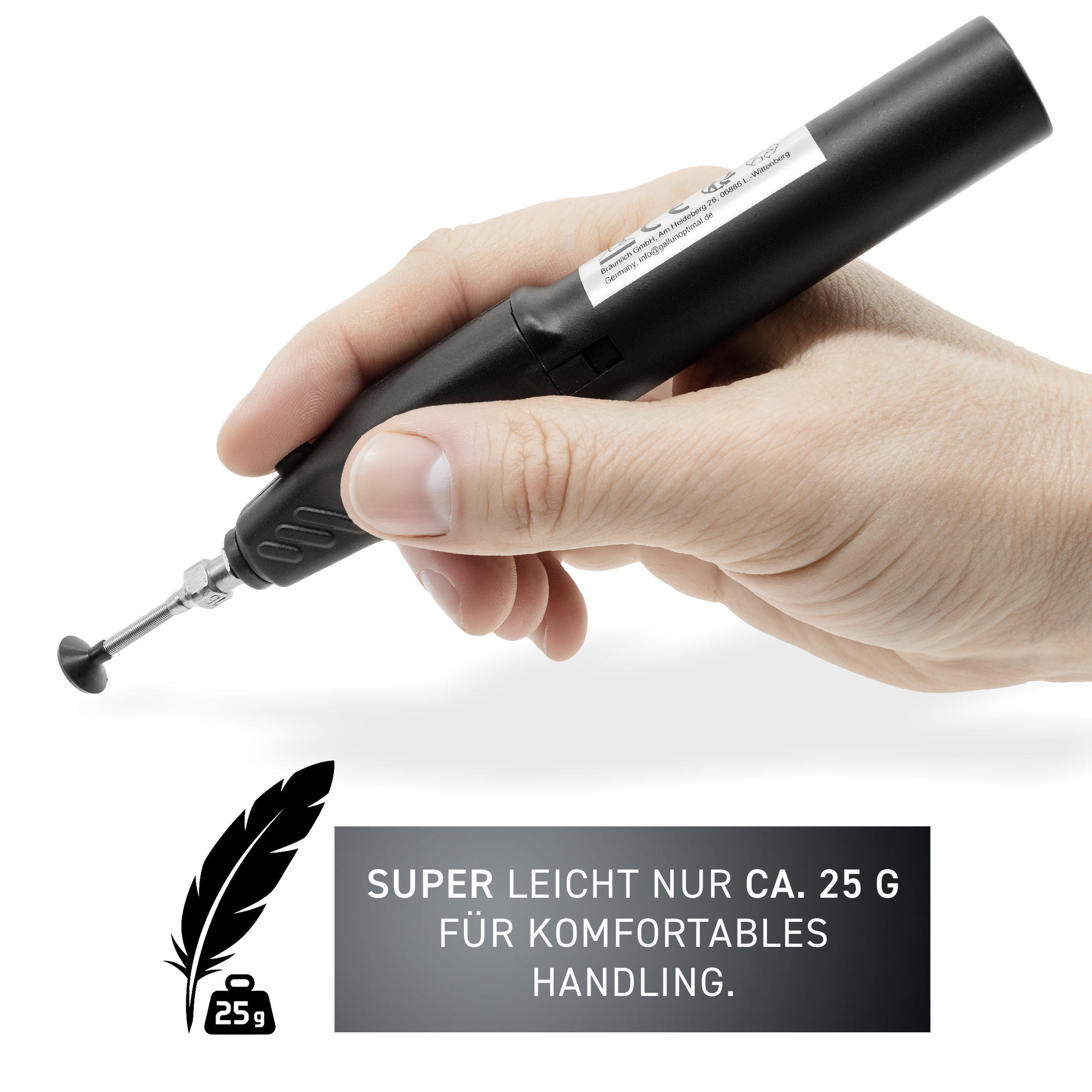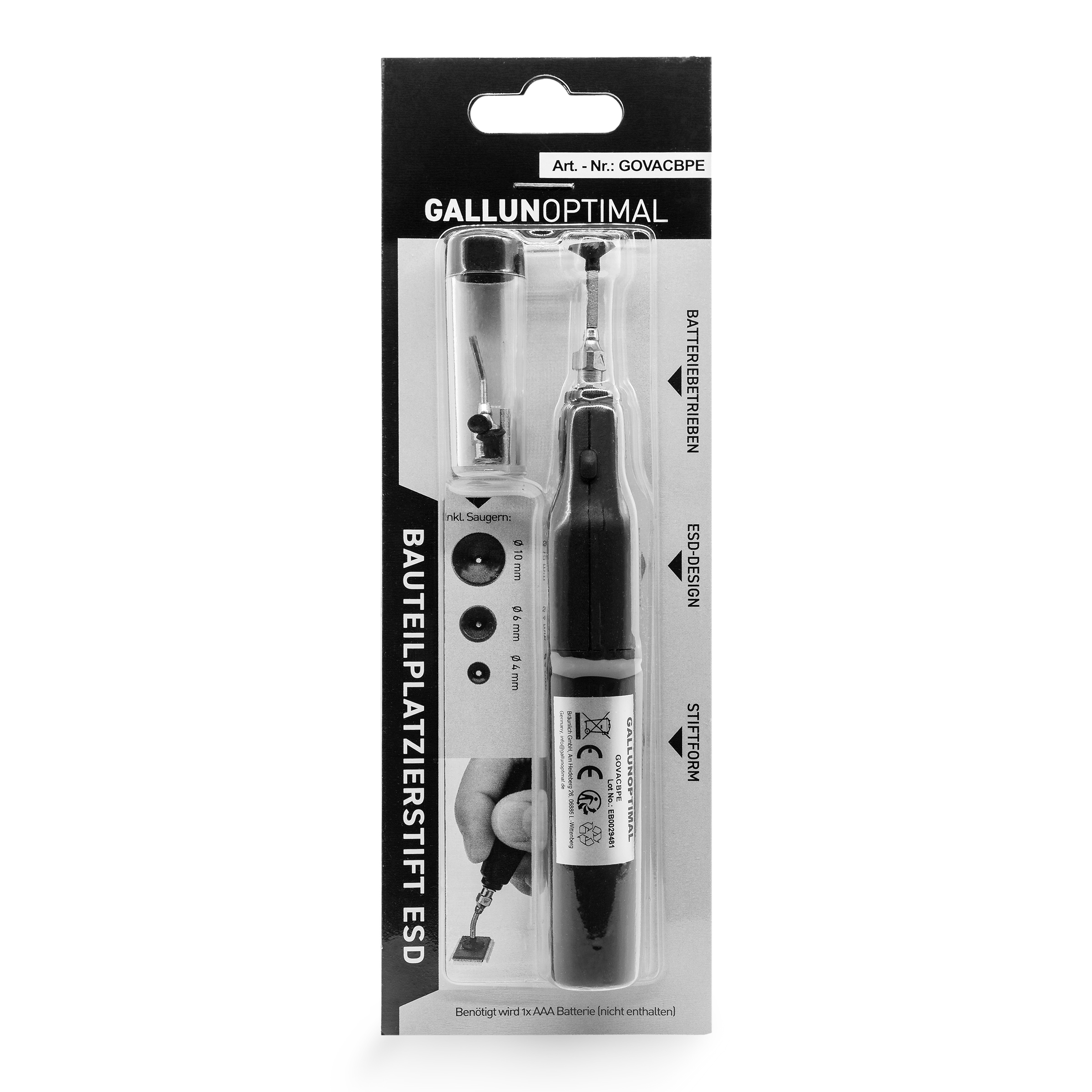 GALLUNOPTIMAL Bauteilplatzierstift, ESD, batteriebetrieben, mit Saugern 4/6/10mm, 133mm x 19/22,5, nur 25g
