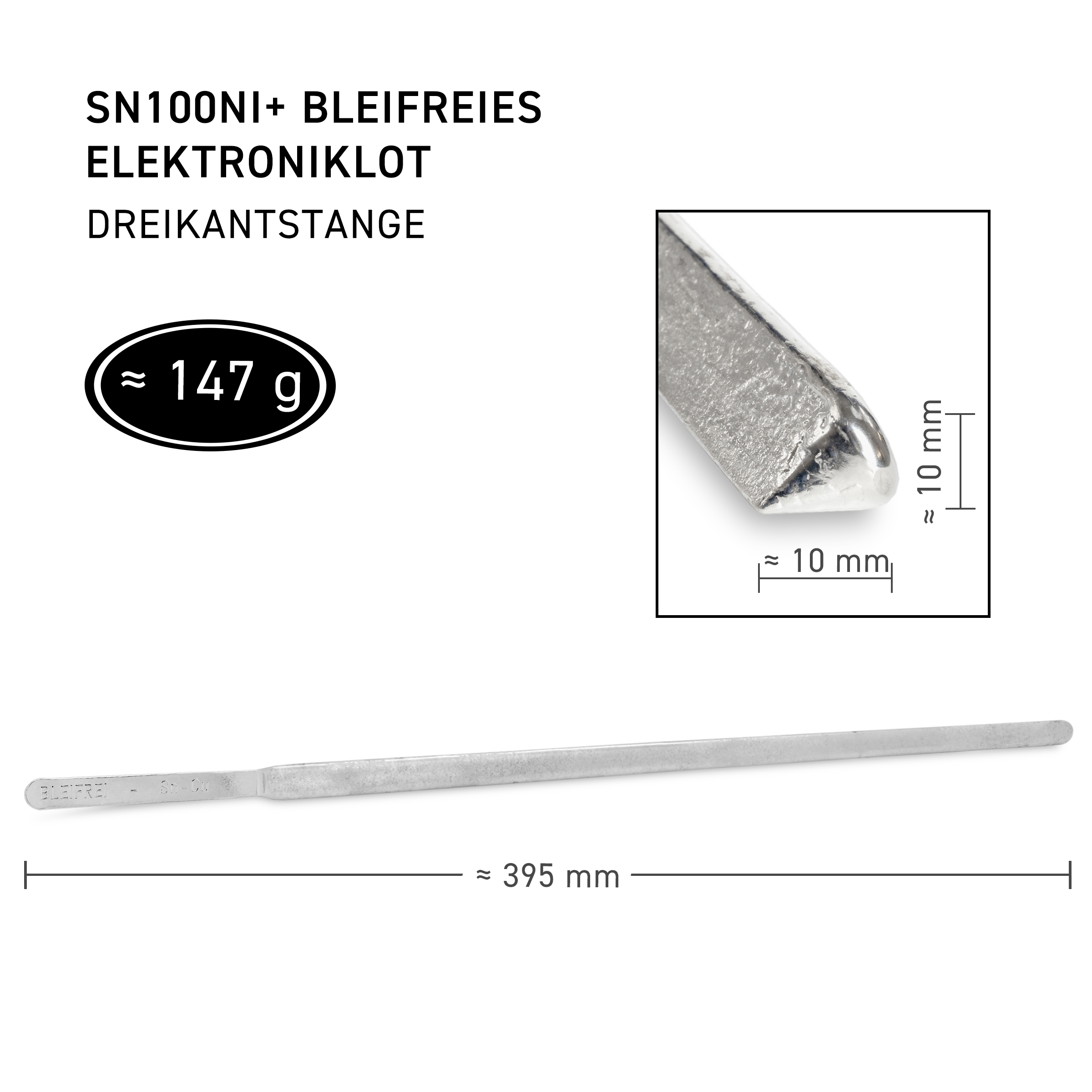 GALLUNOPTIMAL by FELDER ISO-Tin Sn100Ni+ GOSZDNi+ – Triangular rod approx. 10×10×395 mm (approx. 147 g) – Lead-free electronic solder – Price per kg
